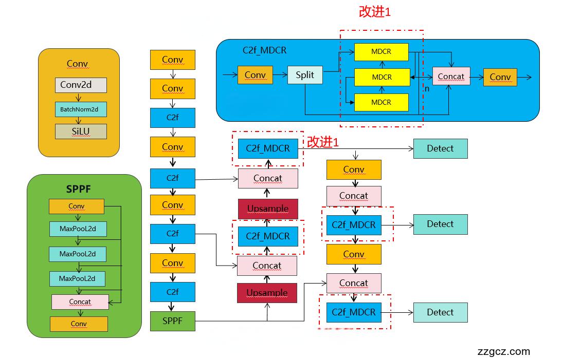 只需要在你源码基础上加入C2f_MDCR,其他模块为博主其他文章的优化点